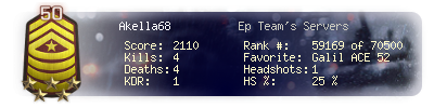 | Headshots | 428 | Suicides | 17 | Headshot / Kill | 17.53 % |
