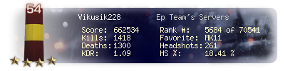 | Headshots | 428 | Suicides | 28 | Headshot / Kill | 18.79 % |