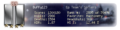 | Headshots | 369 | Suicides | 122 | Headshot / Kill | 12.44 % |