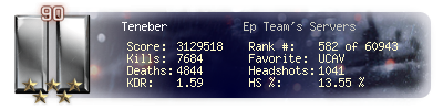 | Kills | 7684 | Deaths | 4844 | Kill / Death | 1.59 |
