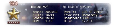 | Kills | 18661 | Deaths | 15699 | Kill / Death | 1.19 |