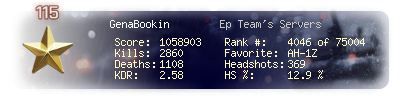 | Kills | 2860 | Deaths | 1108 | Kill / Death | 2.58 |