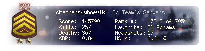 | Kill-streak | 8 | Death-streak | 12 | Team Kills | 0 |