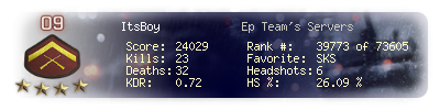| Kill-streak | 3 | Death-streak | 5 | Team Kills | 0 |