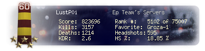 | Kills | 3157 | Deaths | 1214 | Kill / Death | 2.6 |