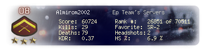 | Kill-streak | 6 | Death-streak | 9 | Team Kills | 0 |