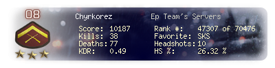 | Kill-streak | 3 | Death-streak | 10 | Team Kills | 0 |
