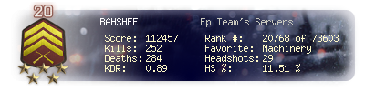 | Headshots | 29 | Suicides | 33 | Headshot / Kill | 11.51 % |