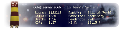 | Headshots | 205 | Suicides | 39 | Headshot / Kill | 13.42 % |