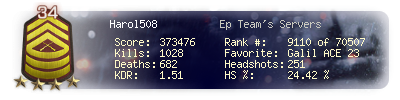 | Kill-streak | 15 | Death-streak | 16 | Team Kills | 0 |