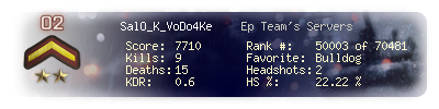 | Kill-streak | 2 | Death-streak | 5 | Team Kills | 0 |