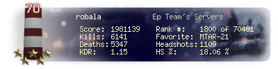 | Kill-streak | 12 | Death-streak | 15 | Team Kills | 1 |