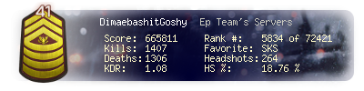 | Kills | 1407 | Deaths | 1306 | Kill / Death | 1.08 |