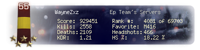 | Headshots | 576 | Suicides | 79 | Headshot / Kill | 17.59 % |