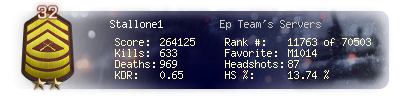 | Kill-streak | 5 | Death-streak | 11 | Team Kills | 0 |