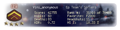 | Kill-streak | 4 | Death-streak | 9 | Team Kills | 0 |
