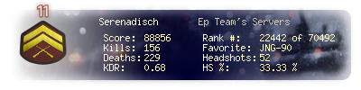 | Headshots | 46 | Suicides | 3 | Headshot / Kill | 29.87 % |