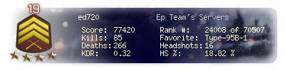 | Kills | 85 | Deaths | 266 | Kill / Death | 0.32 |