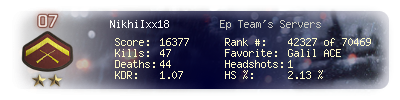 | Kills | 47 | Deaths | 44 | Kill / Death | 1.07 |