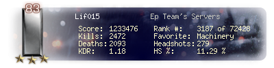 | Kills | 2026 | Deaths | 1730 | Kill / Death | 1.17 |