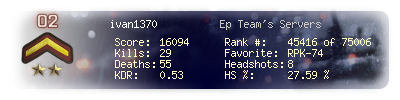 | Kill-streak | 5 | Death-streak | 8 | Team Kills | 0 |