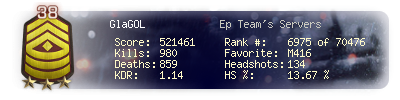 | Headshots | 79 | Suicides | 37 | Headshot / Kill | 11 % |