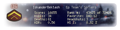 | Kill-streak | 3 | Death-streak | 12 | Team Kills | 0 |
