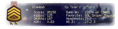 | Headshots | 29 | Suicides | 4 | Headshot / Kill | 23.2 % |