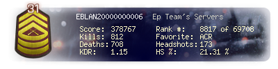 | Headshots | 173 | Suicides | 31 | Headshot / Kill | 21.31 % |