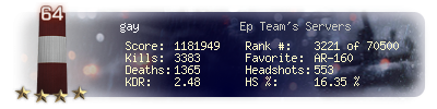 | Kills | 3383 | Deaths | 1365 | Kill / Death | 2.48 |