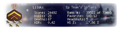 | Kills | 27 | Deaths | 67 | Kill / Death | 0.4 |
