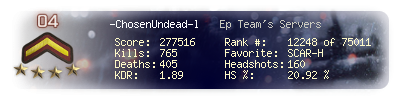 | Headshots | 160 | Suicides | 23 | Headshot / Kill | 20.92 % |
