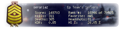 | Headshots | 81 | Suicides | 1 | Headshot / Kill | 26.05 % |