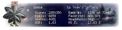 | Kills | 5077 | Deaths | 3123 | Kill / Death | 1.63 |