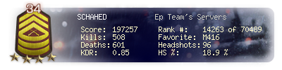 | Headshots | 74 | Suicides | 3 | Headshot / Kill | 19.63 % |