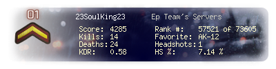 | Kill-streak | 4 | Death-streak | 9 | Team Kills | 0 |