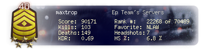 | Kill-streak | 5 | Death-streak | 10 | Team Kills | 0 |
