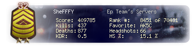 | Headshots | 66 | Suicides | 17 | Headshot / Kill | 15.1 % |