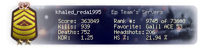 | Headshots | 206 | Suicides | 9 | Headshot / Kill | 21.94 % |