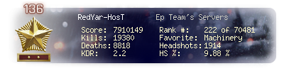 | Headshots | 2290 | Suicides | 108 | Headshot / Kill | 10.26 % |
