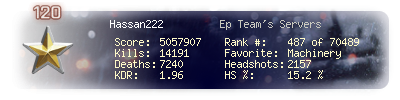 | Headshots | 3256 | Suicides | 144 | Headshot / Kill | 15.18 % |