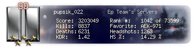 | Kills | 8039 | Deaths | 5652 | Kill / Death | 1.42 |