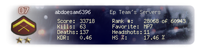 | Kills | 63 | Deaths | 137 | Kill / Death | 0.46 |