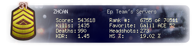 | Kill-streak | 11 | Death-streak | 10 | Team Kills | 1 |
