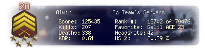 | Kill-streak | 6 | Death-streak | 13 | Team Kills | 0 |