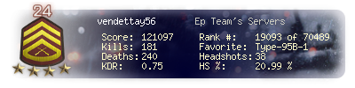 | Kills | 181 | Deaths | 240 | Kill / Death | 0.75 |