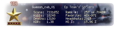 | Kills | 31890 | Deaths | 22175 | Kill / Death | 1.44 |