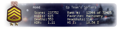 | Headshots | 114 | Suicides | 4 | Headshot / Kill | 18.54 % |