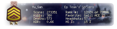 | Kills | 217 | Deaths | 409 | Kill / Death | 0.53 |
