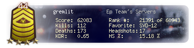 | Kills | 112 | Deaths | 173 | Kill / Death | 0.65 |